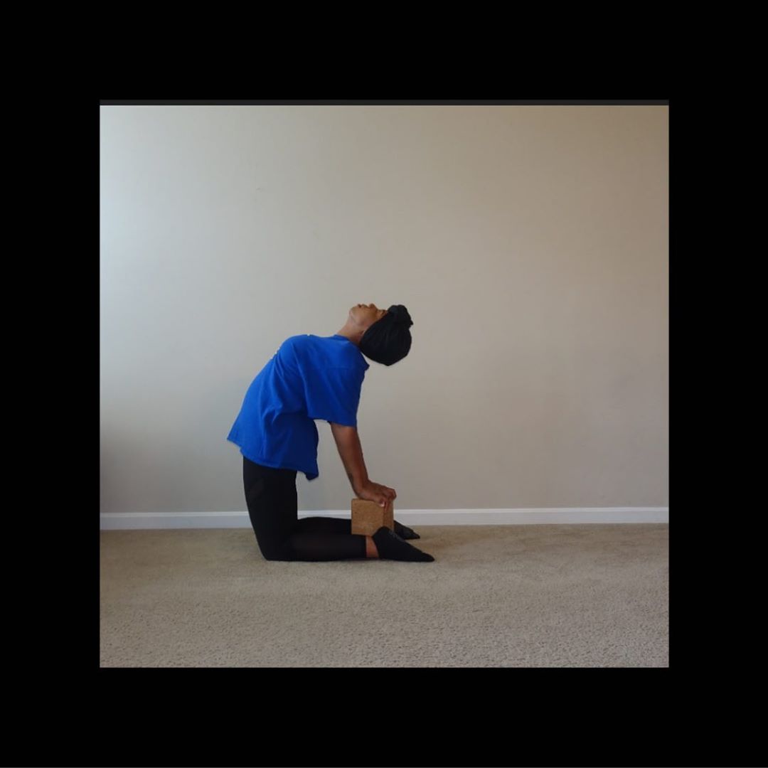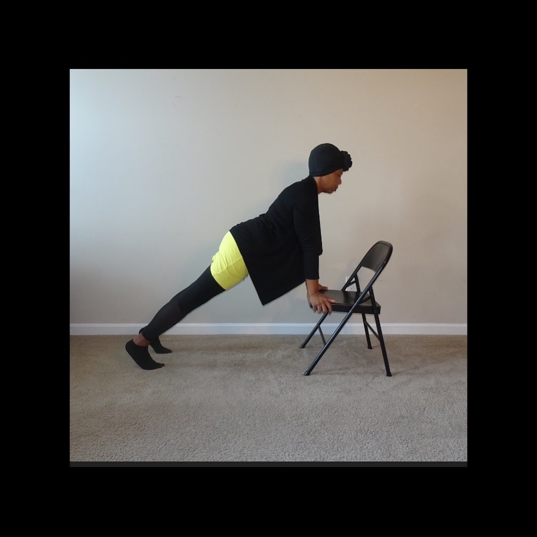 And access is key! Desi Johnson, Peer Support for MVP says, “I use props to make the poses more accessible to me. I have carpal tunnel and tendinitis which kept me out of weight bearing postures for a couple of months. Downward dog, plank, and knees-chest-chin were unavailable to me so I decided to buy a chair to continue to do these postures. Props can even support us through postures that would otherwise be out of reach. Desi continues, “A great achievement for me is getting into bhujapidasana (shoulder pressing) with my chair and blocks. Without props weight bearing postures would be impossible for me.” As far as other props, Desi shares, “I also use a strap for shoulder mobility exercises, dancer pose, king pigeon, and cow face pose.”